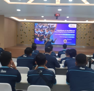 kami menawarkan bentuk pelatihan yang dapat disesuaikan dengan kebutuhan perusahaan yang berdampak sangat signifikan bagi para petugas cleaner. Hal tersebut juga pastinya akan memerikan reputasi baik bagi perusahaan yang bersangkutan